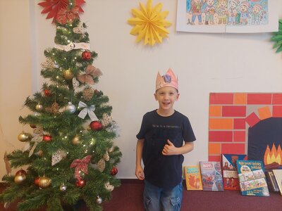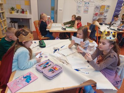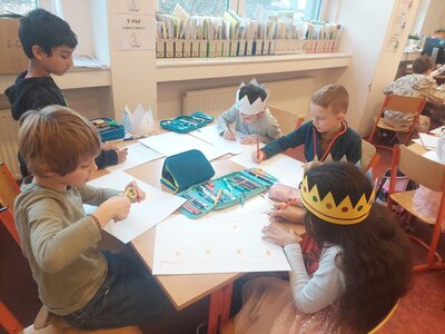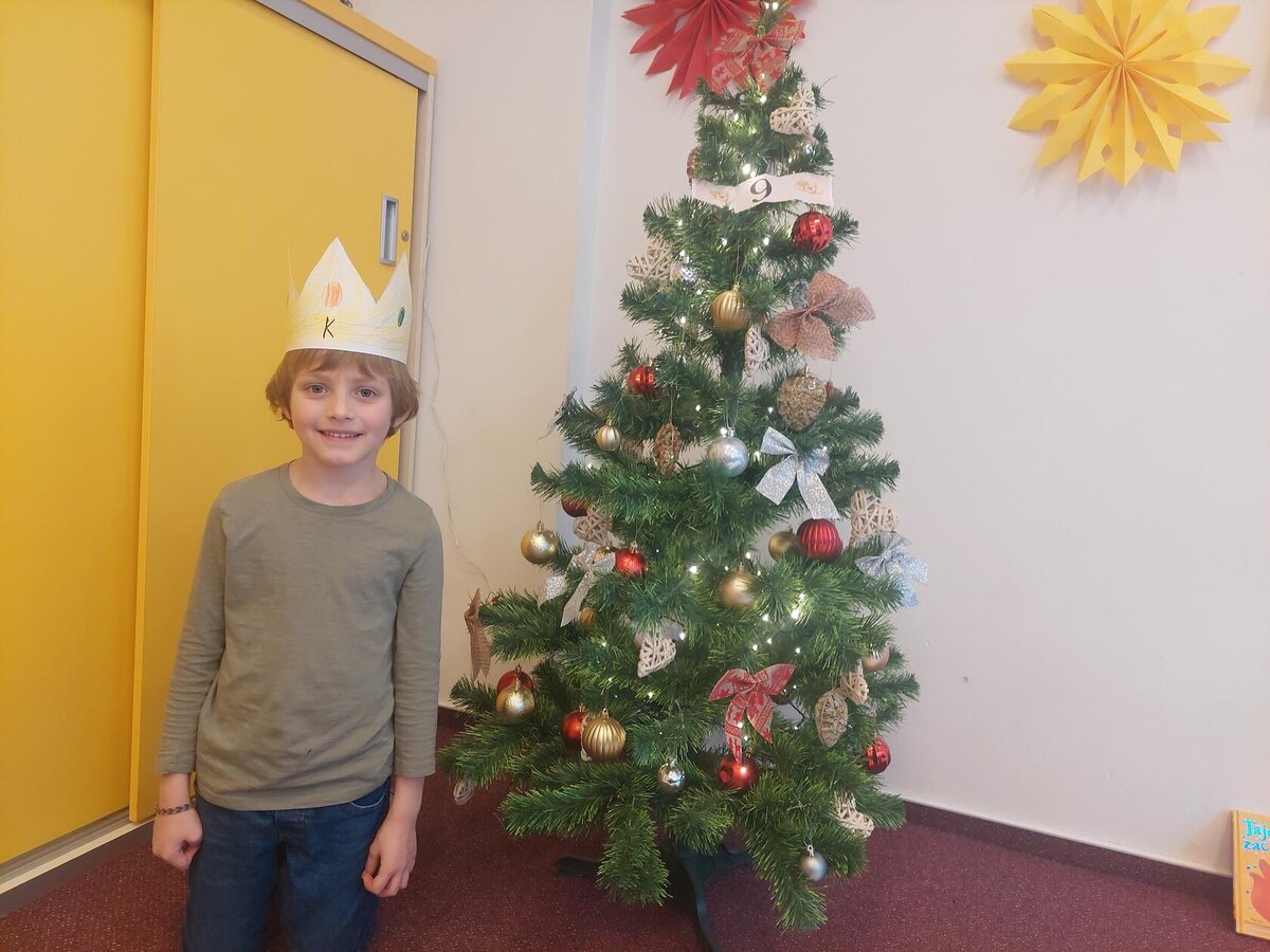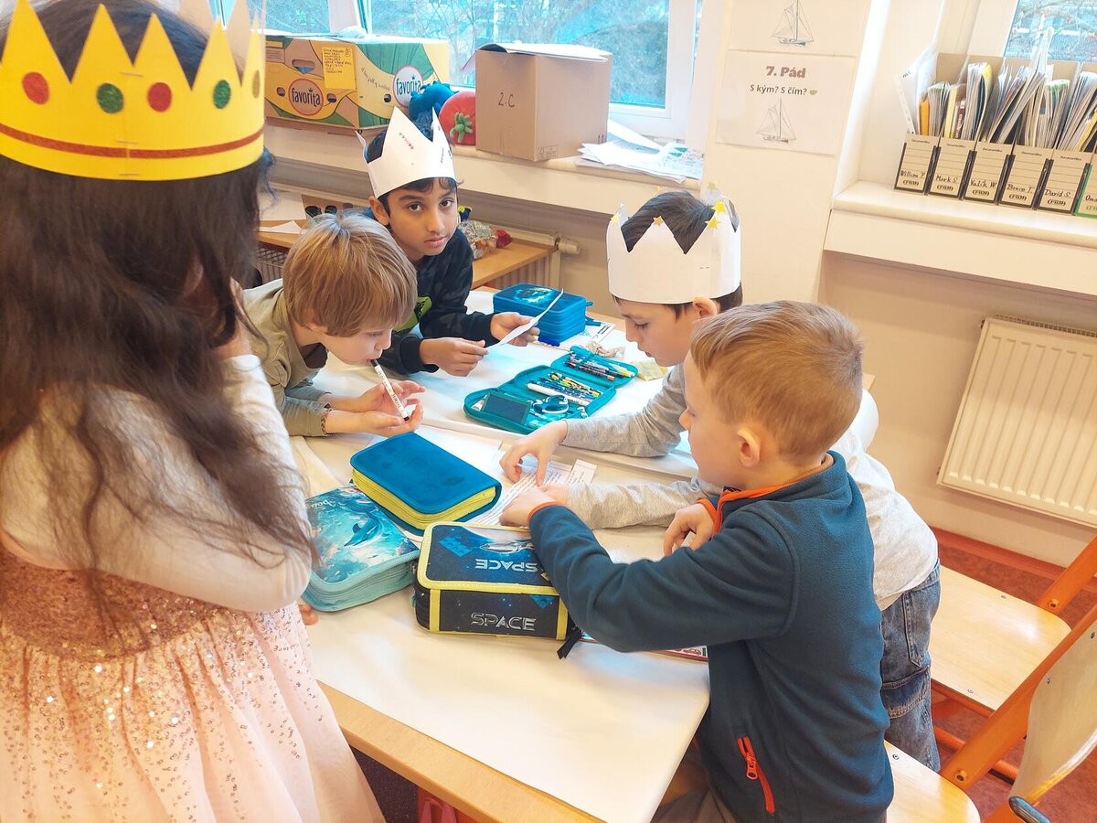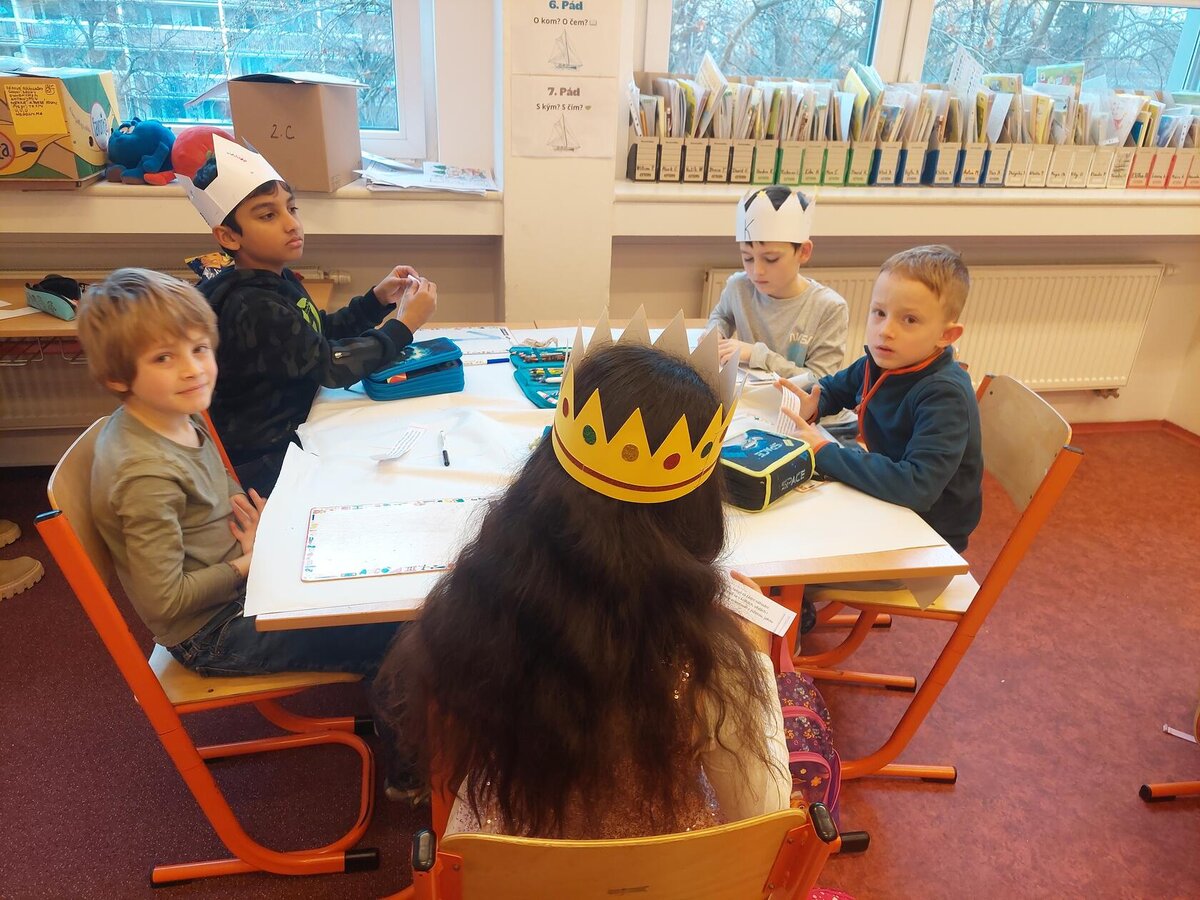 Naše třída 2. C se dnes proměnila v pravou královskou posádku a vydala se na slavnostní putování s třemi králi K+M+B za jasnou hvězdnou kometou. Poznávali jsme význam jejich vzácných darů, naslouchali příběhu, zpívali královské písně a tančili. Společně jsme skládali děj ve správném pořadí, výtvarně ztvárnili královské putování a vytvořili si vlastní koruny. Den byl naplněn radostí, hrdostí malých králů a kouzelnou sváteční atmosférou