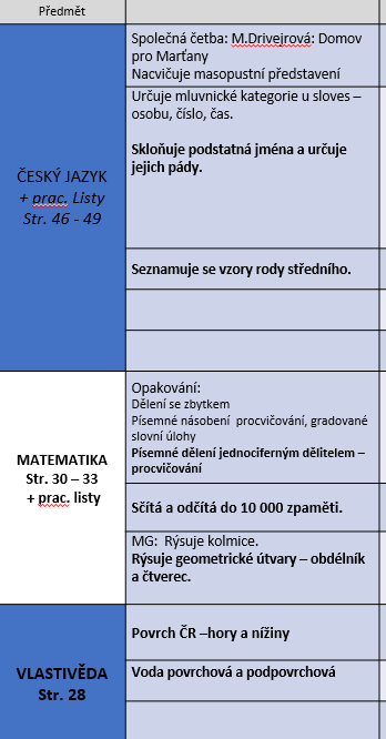 Týdenní plán 26.1. - 30.1.