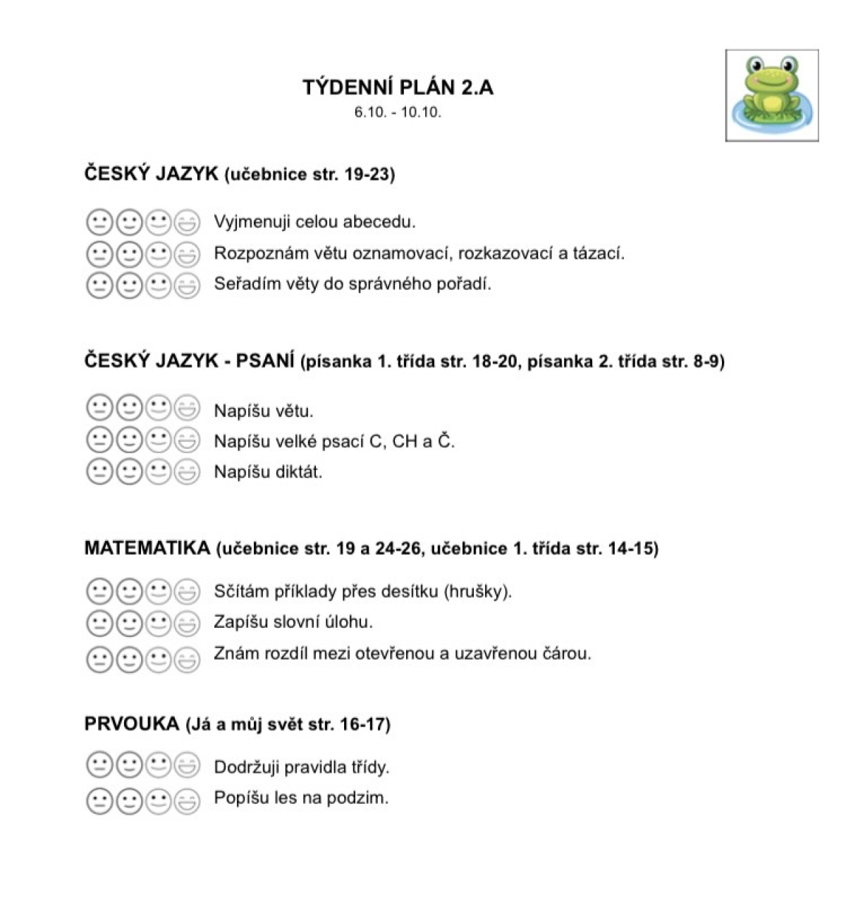 Týdenní plán 6.10. - 10.10.