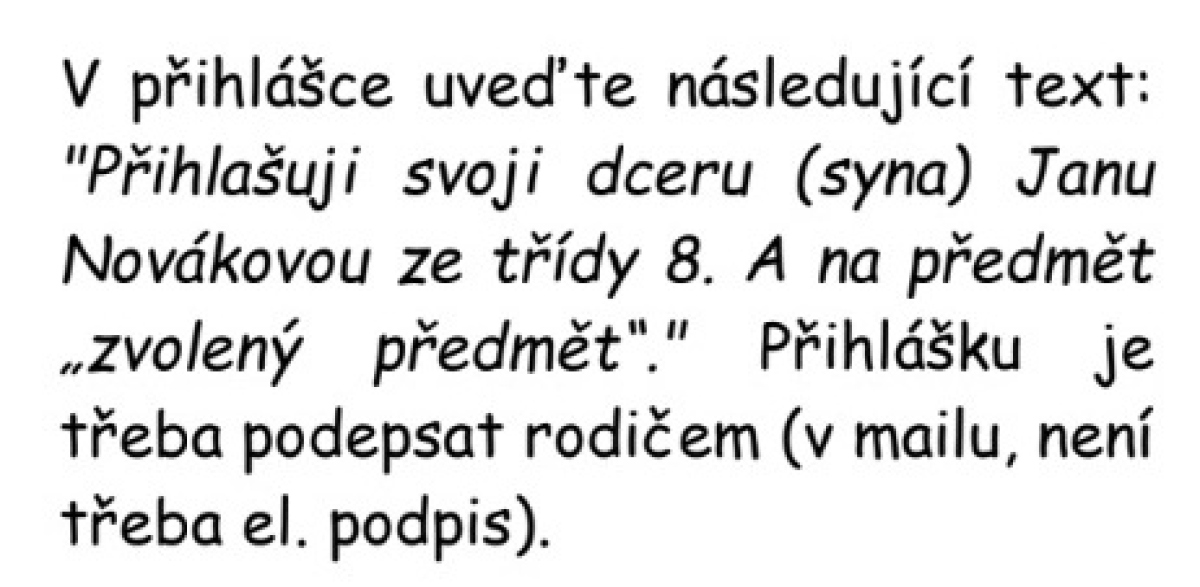 věnujte prosím pozornost zápisu volitelných předmětů Vašich dětí. Žáci mají možnost vybrat si ze dvou variant: